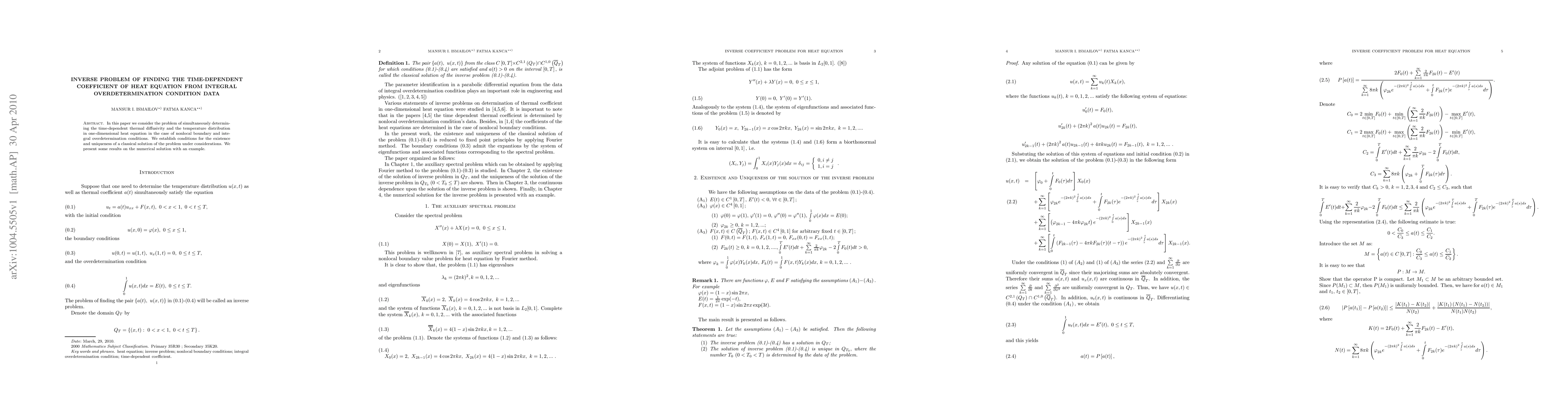 This paper addresses the inverse problem of identifying the time-dependent thermal diffusivity and temperature distribution in a one-dimensional heat equation under nonlocal boundary and integral overdetermination conditions. It establishes conditions for the existence and uniqueness of a classical solution and demonstrates numerical solution methods with an example.