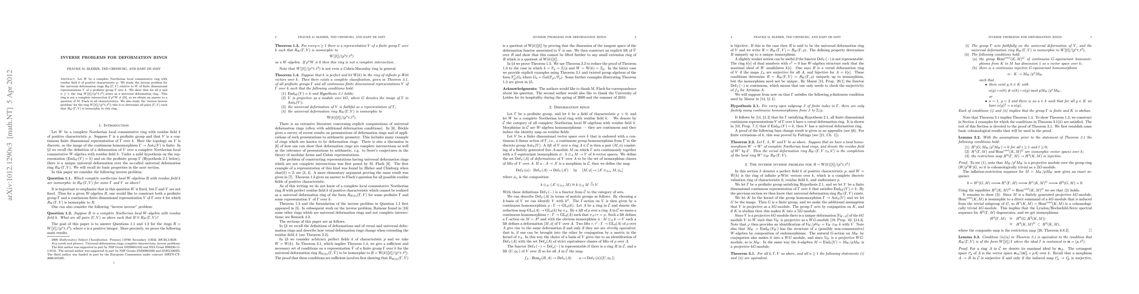 The paper studies inverse problems for deformation rings of finite dimensional representations of profinite groups over a complete local commutative Noetherian ring with positive characteristic. It shows that a specific ring is universal in certain characteristics.