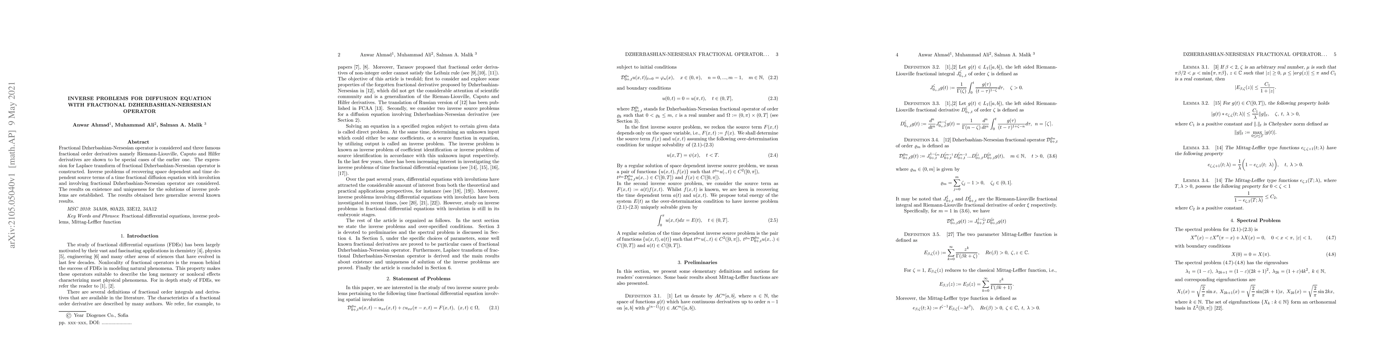 This paper explores the fractional Dzherbashian-Nersesian operator, demonstrating its generality over Riemann-Liouville, Caputo, and Hilfer derivatives. It constructs the Laplace transform expression and addresses inverse problems for time fractional diffusion equations involving this operator, establishing existence and uniqueness of solutions and generalizing prior results.