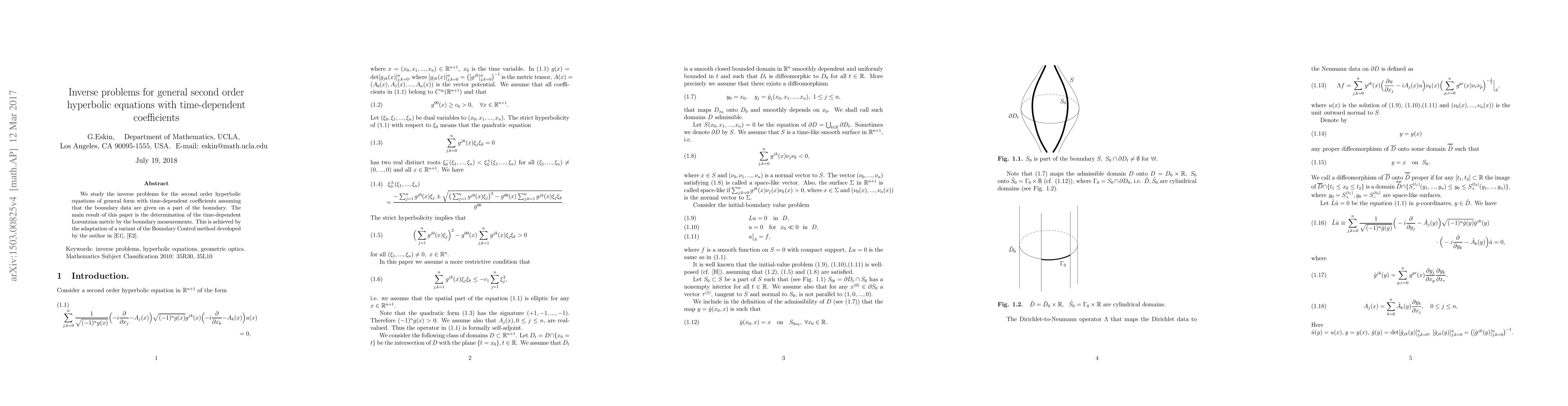 The paper presents a novel adaptation of the Boundary Control method to solve inverse problems for hyperbolic equations with time-dependent coefficients.