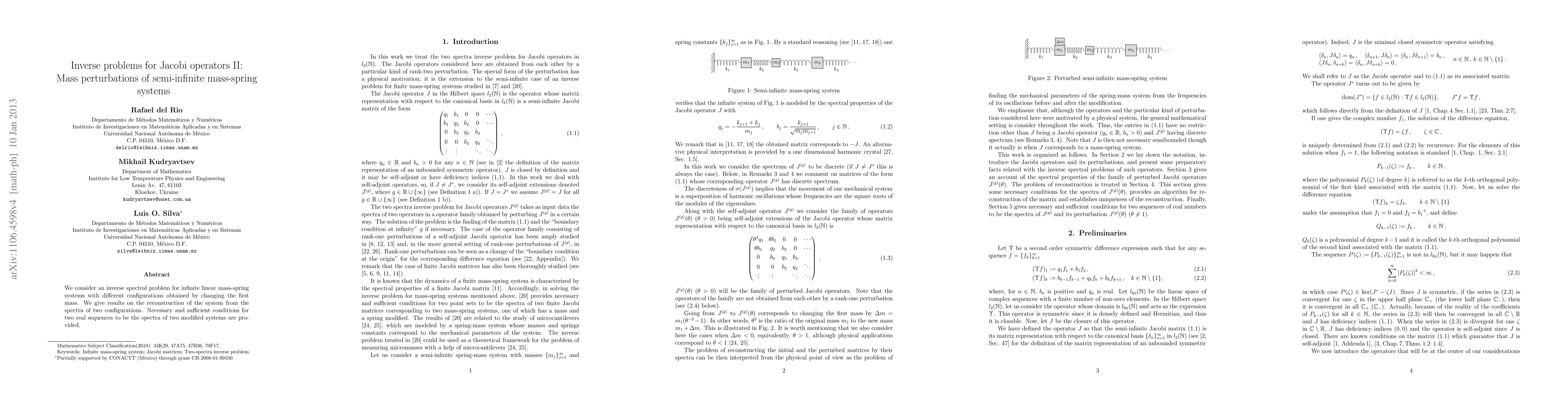 This paper addresses an inverse spectral problem for infinite linear mass-spring systems, focusing on reconstructing the system configuration from spectral data. It provides necessary and sufficient conditions for two real sequences to correspond to the spectra of two modified systems.