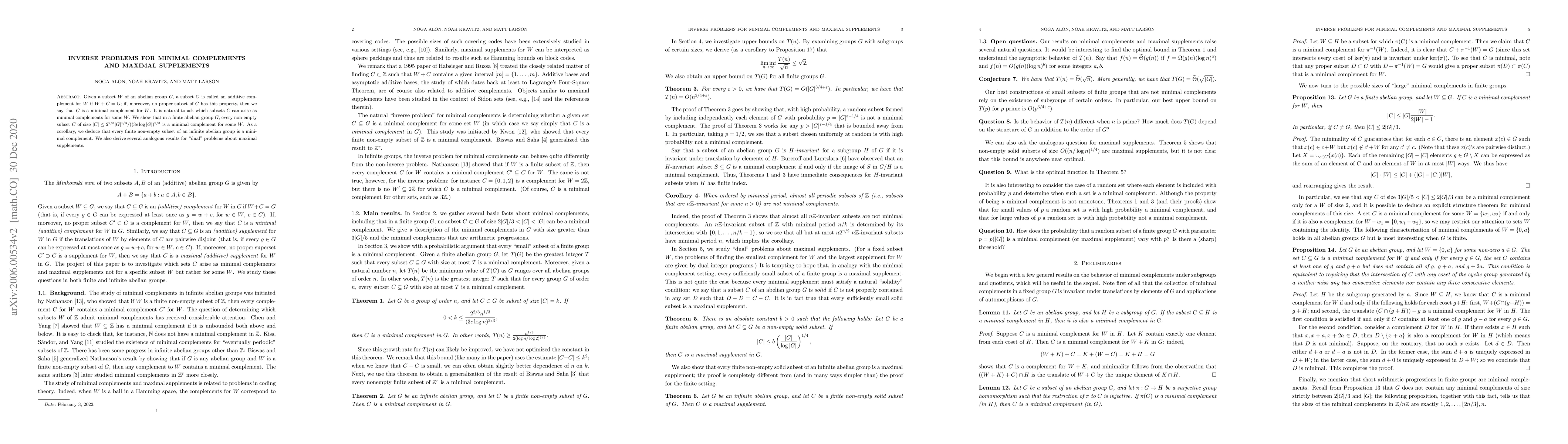 Given a subset $W$ of an abelian group $G$, a subset $C$ is called an additive complement for $W$ if $W+C=G$; if, moreover, no proper subset of $C$ has this property, then we say that $C$ is a minimal complement for $W$. It is natural to ask which subsets $C$ can arise as minimal complements for some $W$. We show that in a finite abelian group $G$, every non-empty subset $C$ of size $|C| \leq 2^{2/3}|G|^{1/3}/((3e \log |G|)^{2/3}$ is a minimal complement for some $W$. As a corollary, we deduce that every finite non-empty subset of an infinite abelian group is a minimal complement. We also derive several analogous results for ``dual'' problems about maximal supplements.