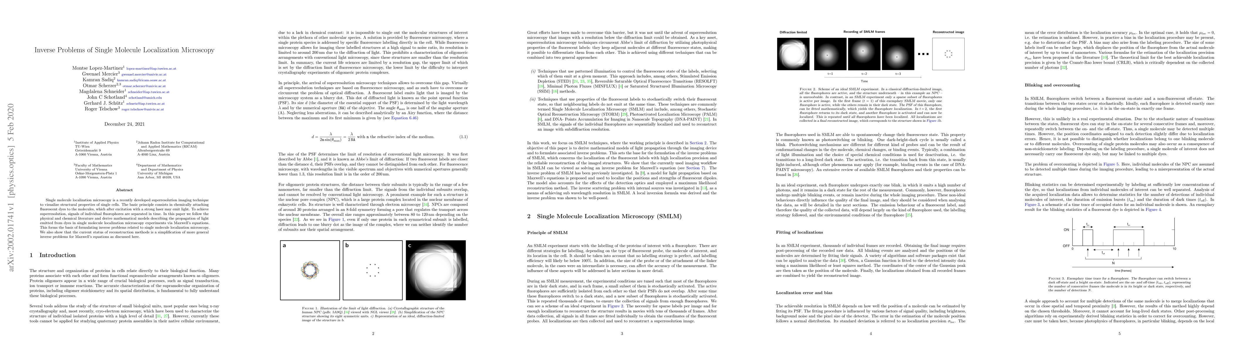 This paper develops mathematical models based on Maxwell's equations to describe light propagation in single molecule localization microscopy, establishing a framework for inverse problems and demonstrating that current reconstruction methods are simplified versions of broader inverse problems.