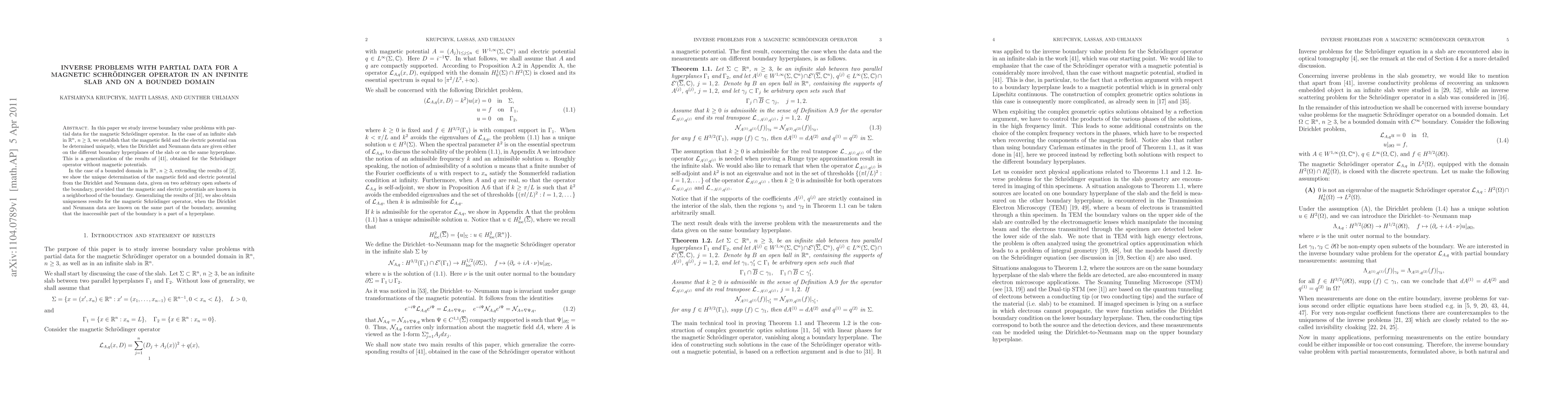 This paper investigates inverse problems for the magnetic Schrödinger operator with partial data, proving unique determination of the magnetic field and electric potential in both infinite slab and bounded domain settings, extending previous results for non-magnetic cases. Uniqueness is established under various data conditions, including different or same boundary hyperplanes and open subsets of the boundary.