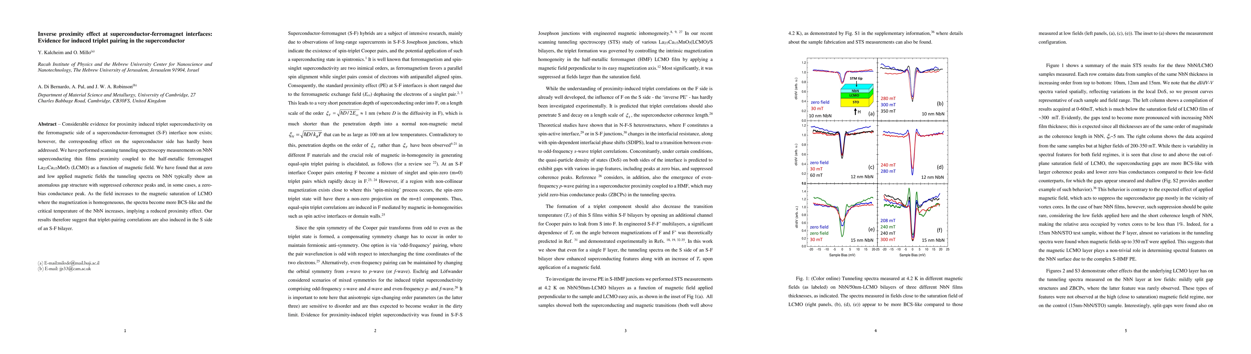 The paper presents detailed STS measurements demonstrating the inverse proximity effect and triplet pairing in superconductors influenced by ferromagnetic layers.