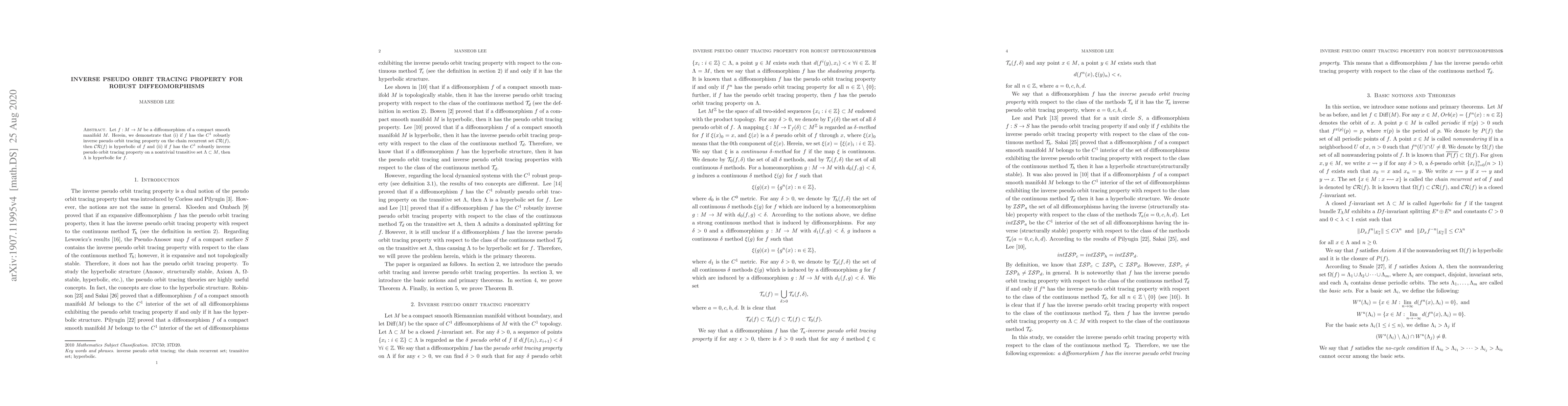 Let $M$ be a closed smooth Riemannian manifold $M$, and let $f:M\to M$ be a diffeomorphism. Herein, we demonstrate that (i) if $f$ has the $C^1$ robustly inverse shadowing property on the chain recurrent set $\mathcal{CR}(f)$, then $\mathcal{CR}(f)$ is hyperbolic and (ii) if $f$ has the $C^1$ robustly inverse shadowing property on a nontrivial transitive set $\Lambda\subset M$, then $\Lambda$ is hyperbolic for $f$. Especially, the item (ii) is a proof of the conjecture of Lee and Lee \cite{LL}.