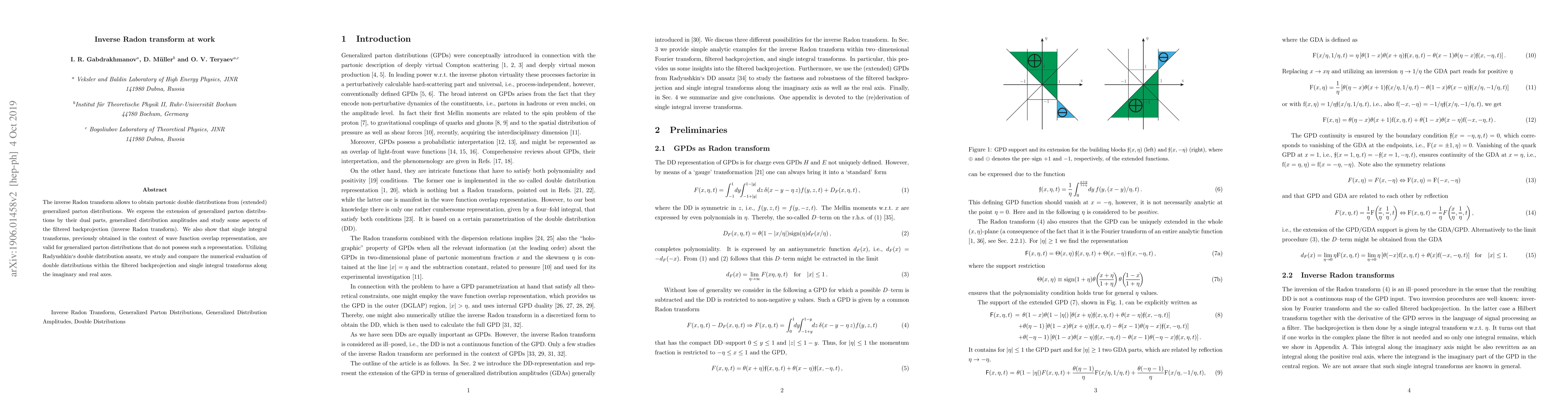 The paper presents a detailed analysis of inverse Radon transforms, providing both analytical and numerical methods to derive partonic double distributions from generalized parton distributions.