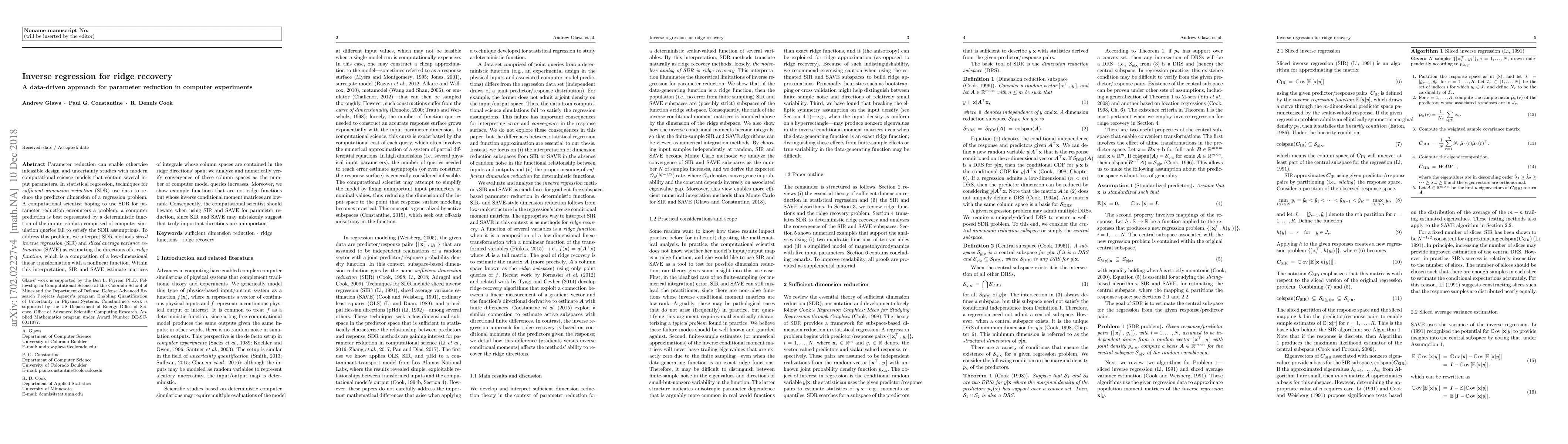 Researchers develop a data-driven approach to reduce parameter dimensions in computer experiments using inverse regression and show convergence of column spaces as more simulation queries are added, but caution against misinterpreting results from existing methods like sliced inverse regression.