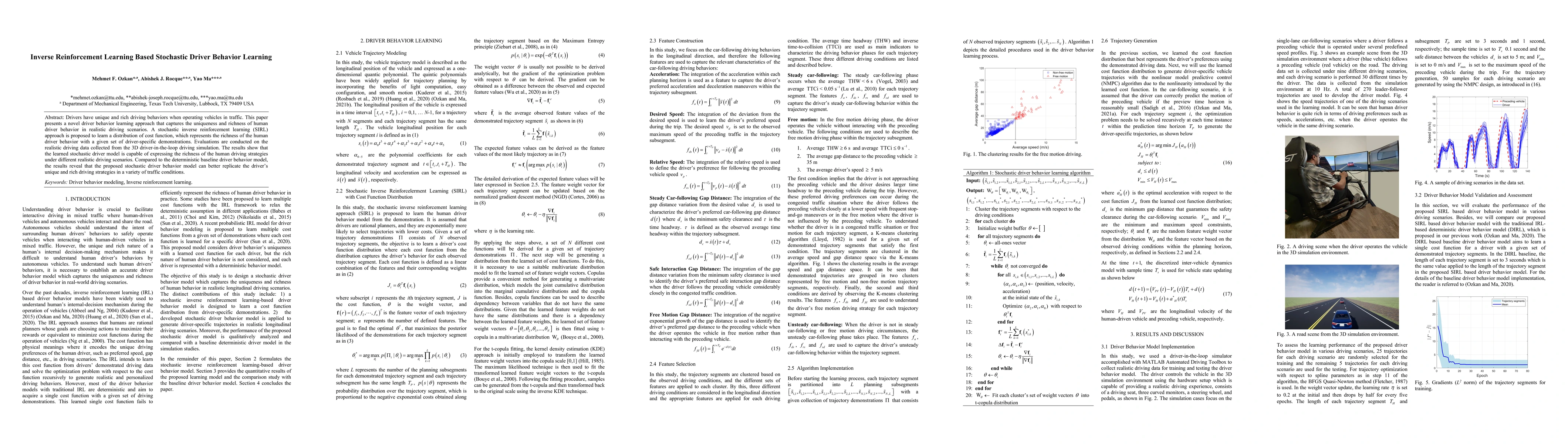 This paper proposes a stochastic inverse reinforcement learning (SIRL) approach to capture the uniqueness of human driver behavior through a distribution of cost functions. Evaluations on 3D simulation data show that the learned model better replicates individual driving strategies compared to deterministic baselines.