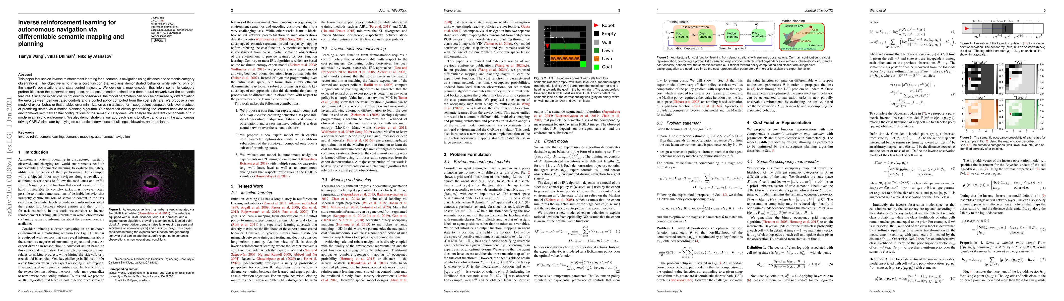 A new approach to autonomous navigation uses inverse reinforcement learning with differentiable semantic mapping and planning to infer a cost function from expert observations, enabling generalization to new environments.