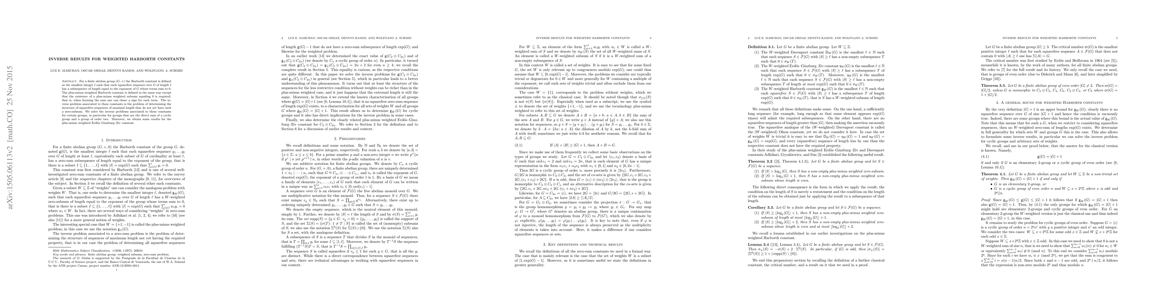 For a finite abelian group $(G,+)$ the Harborth constant is defined as the smallest integer $\ell$ such that each squarefree sequence over $G$ of length $\ell$ has a subsequence of length equal to the exponent of $G$ whose terms sum to $0$. The plus-minus weighted Harborth constant is defined in the same way except that the existence of a plus-minus weighted subsum equaling $0$ is required, that is, when forming the sum one can chose a sign for each term. The inverse problem associated to these constants is the problem of determining the structure of squarefree sequences of maximal length that do not yet have such a zero-subsum. We solve the inverse problems associated to these constant for certain groups, in particular for groups that are the direct sum of a cyclic group and a group of order two. Moreover, we obtain some results for the plus-minus weighted Erd\H{o}s--Ginzburg--Ziv constant.