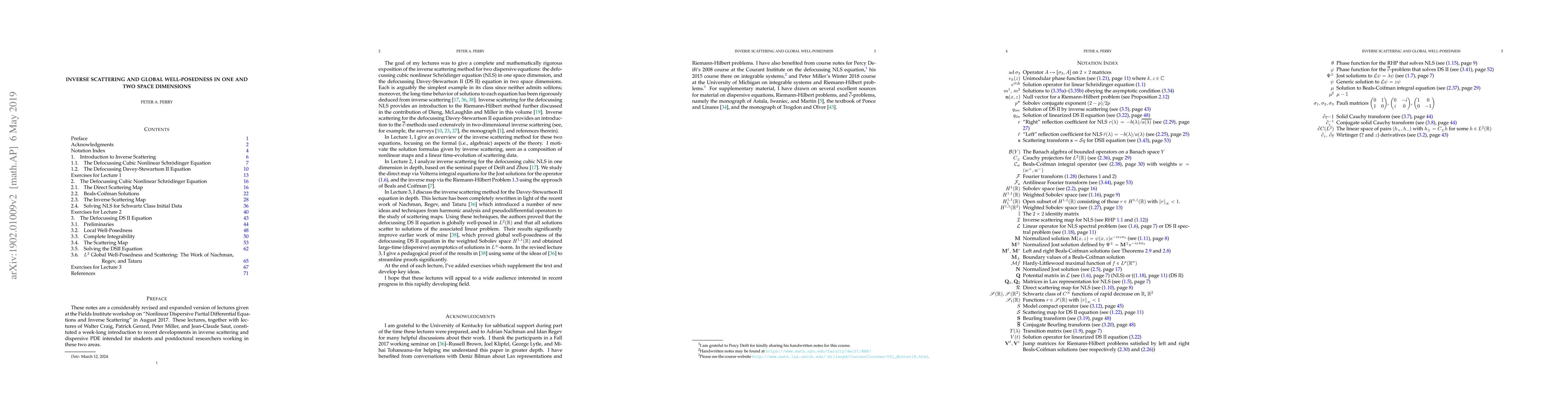 These notes are a considerably revised and expanded version of expository lectures given at the Fields Institute Workshop on "Nonlinear Dispersive Partial Differential Equations and Inverse Scattering" in August 2017. We give a complete and self-contained treatment of inverse scattering for the defocussing cubic NLS in one-dimension, following the 2003 paper of Deift and Zhou, and the defocussing Davey-Stewartson equation in two space dimensions, following the work of Perry and more recent work of Nachman, Regev, and Tataru.