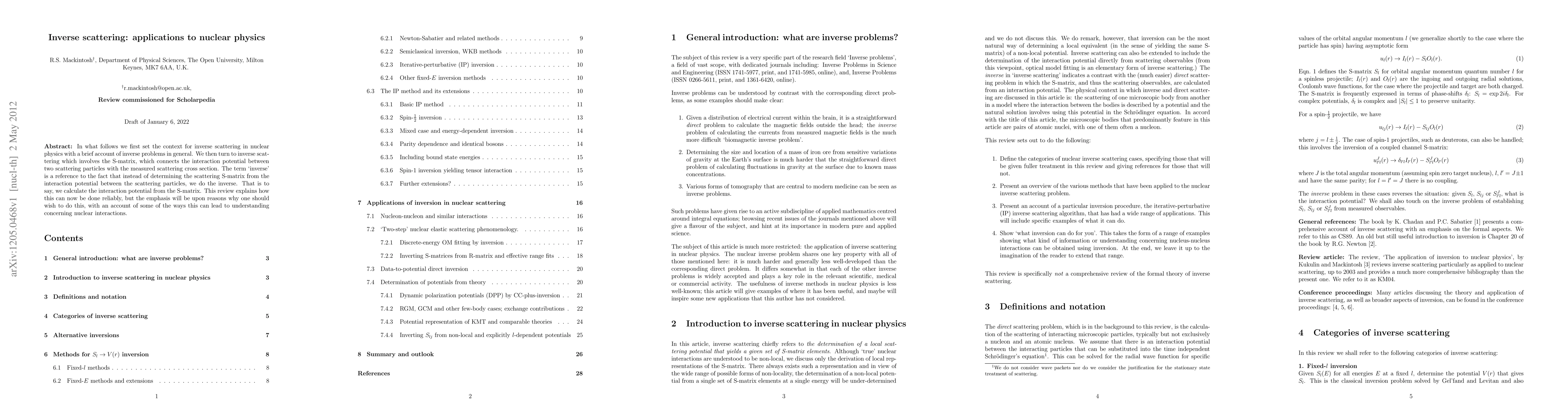 Researchers explore how to calculate interaction potentials between particles in nuclear physics using inverse scattering methods, aiming to gain a deeper understanding of nuclear interactions.