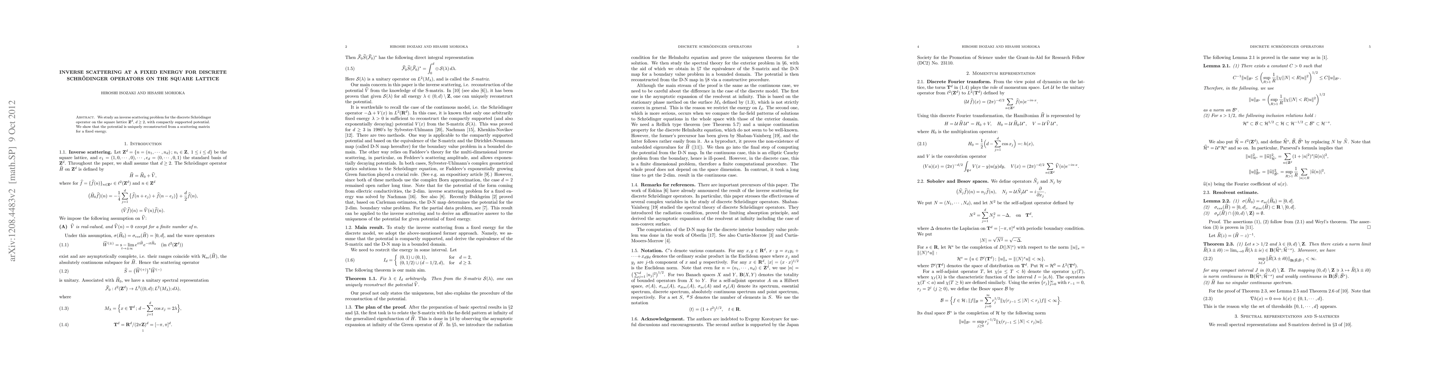 Summary: This paper investigates the inverse scattering problem for discrete Schrödinger operators on square lattices with compactly supported potentials, demonstrating the unique reconstruction of the potential from a scattering matrix at a fixed energy.