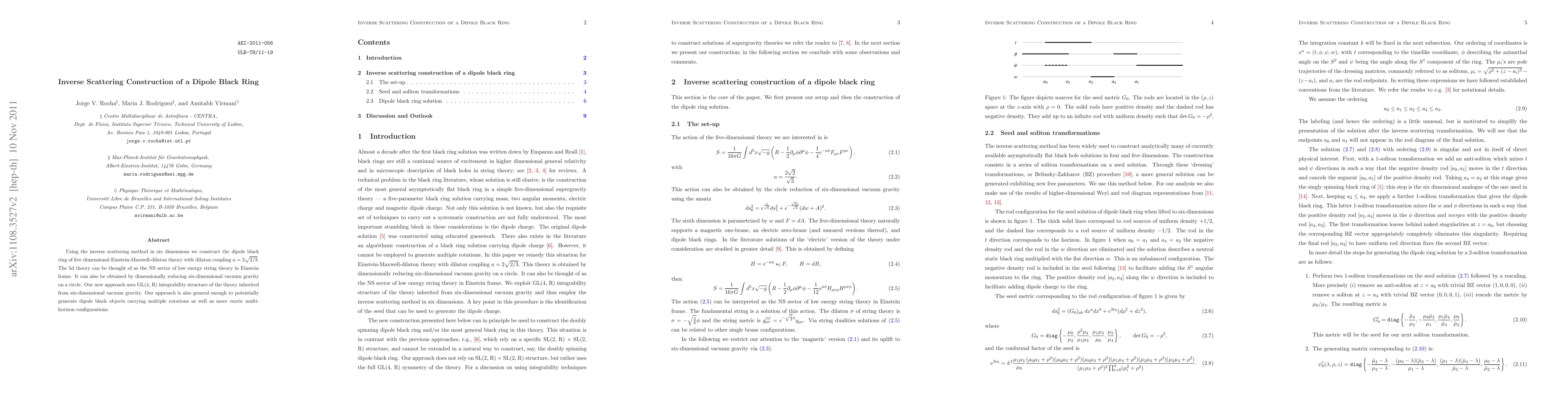 This research paper presents a new method using inverse scattering in six dimensions to construct a dipole black ring in five-dimensional Einstein-Maxwell-dilaton theory. The approach leverages the integrability structure from six-dimensional vacuum gravity, potentially enabling generation of complex black objects with multiple rotations and multi-horizon configurations.
