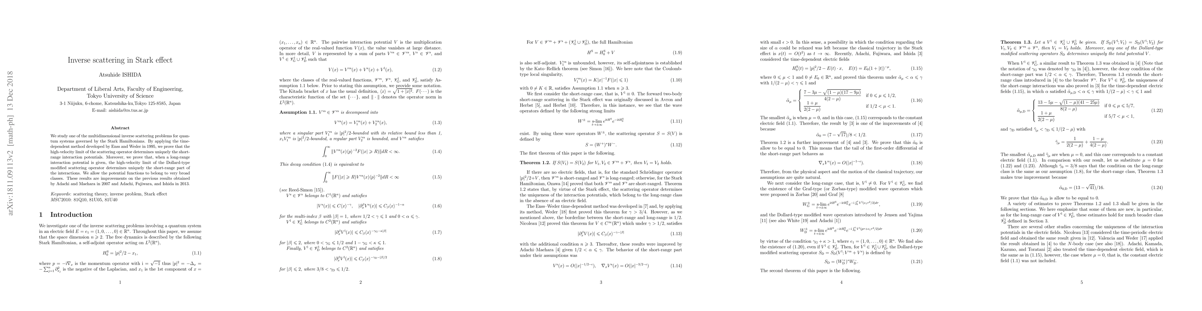 We study one of the multidimensional inverse scattering problems for quantum systems governed by the Stark Hamiltonians. By applying the time-dependent method developed by Enss and Weder in 1995, we prove that the high-velocity limit of the scattering operator determines uniquely the short-range interaction potentials. Moreover, we prove that, when a long-range interaction potential is given, the high-velocity limit of the Dollard-type modified scattering operator determines uniquely the short-range part of the interactions. We allow the potential functions to belong to very broad classes. These results are improvements on the previous results obtained by Adachi and Maehara in 2007 and Adachi, Fujiwara, and Ishida in 2013.