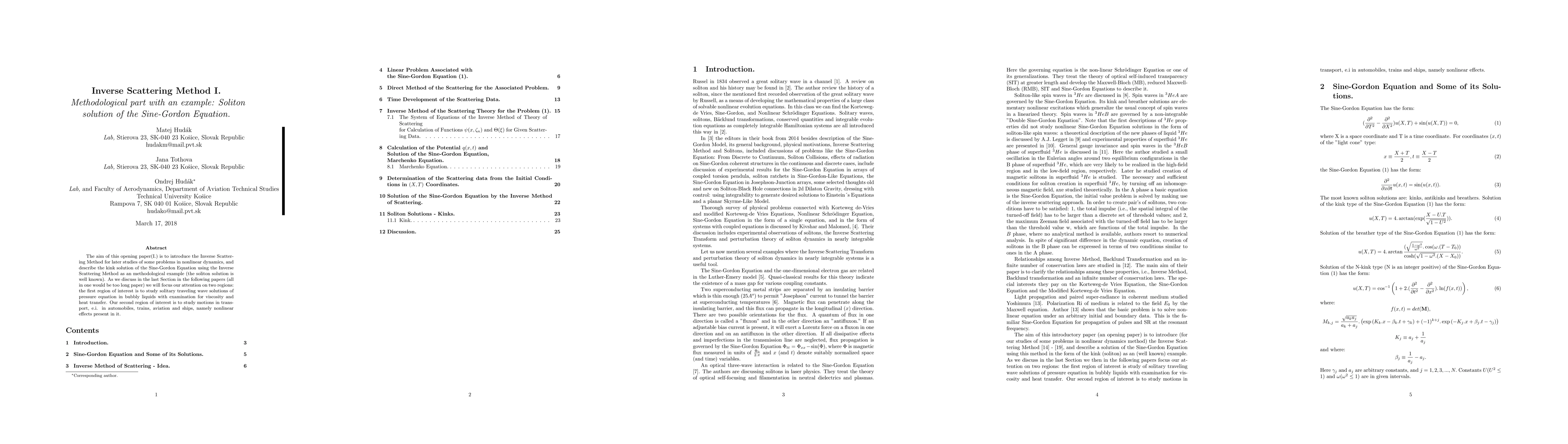 This paper introduces the Inverse Scattering Method, illustrating its application through the soliton solution of the Sine-Gordon Equation, demonstrating its utility in nonlinear dynamics. The methodological example showcases the method's effectiveness in solving complex nonlinear problems.