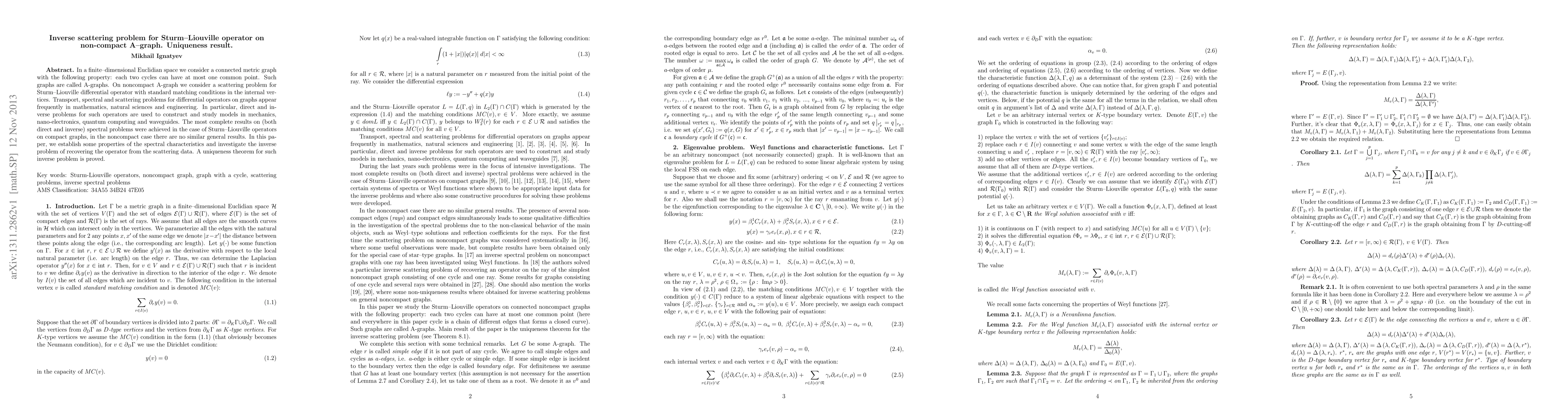 This research paper establishes properties of spectral characteristics and investigates the inverse scattering problem for the Sturm-Liouville operator on noncompact A-graphs. A uniqueness theorem for the inverse problem is proven, contributing to understanding models in mechanics, nano-electronics, and quantum computing.