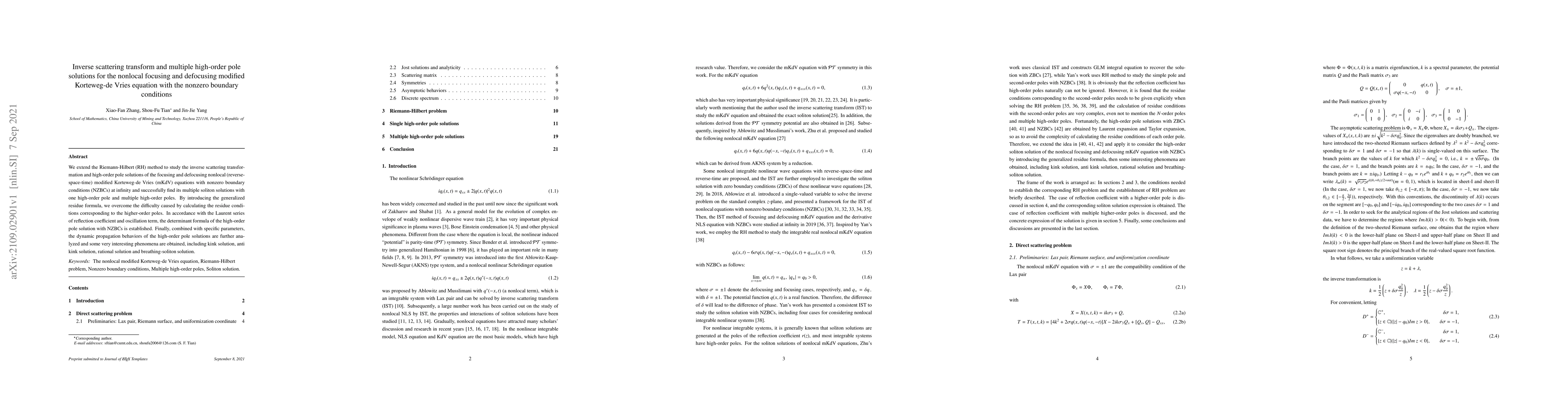 This paper extends the Riemann-Hilbert method to analyze high-order pole solutions for nonlocal modified Korteweg-de Vries equations with nonzero boundary conditions, discovering multiple soliton solutions including kink, anti-kink, rational, and breathing-soliton solutions. The generalized residue formula aids in overcoming challenges related to higher-order poles.