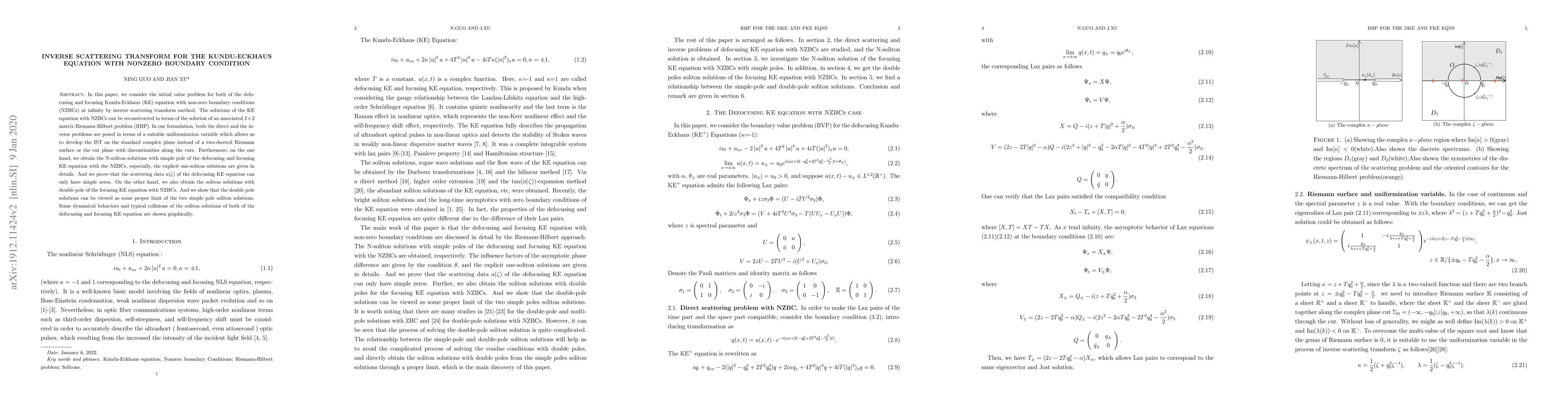 This paper applies the inverse scattering transform (IST) method to solve the Kundu-Eckhaus (KE) equation with non-zero boundary conditions (NZBCs). It reconstructs solutions via a $2 \times 2$ matrix Riemann-Hilbert problem and derives N-soliton solutions, including explicit one-soliton solutions and double pole soliton solutions for the focusing KE equation.