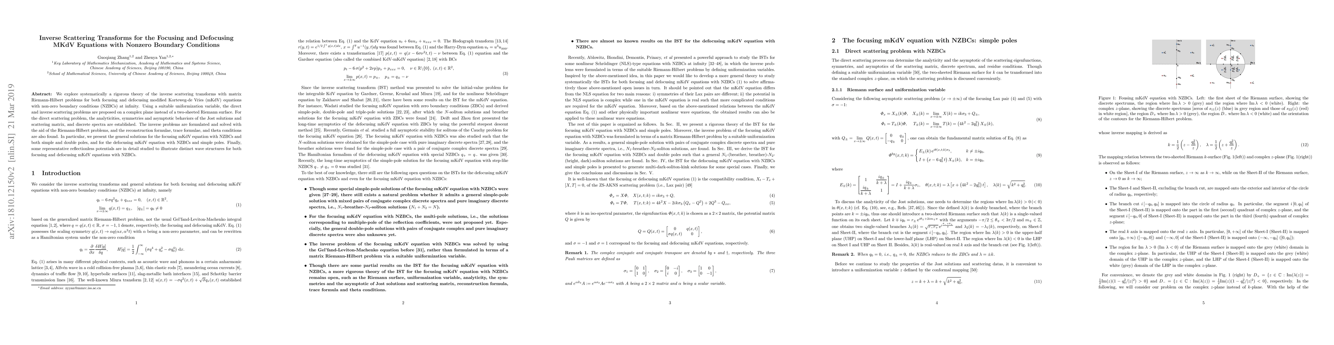 This paper develops a rigorous theory for inverse scattering transforms using matrix Riemann-Hilbert problems to solve both focusing and defocusing modified Korteweg-de Vries (mKdV) equations with non-zero boundary conditions. It presents general solutions and reconstructs wave structures for these equations, highlighting distinct behaviors for focusing and defocusing cases.