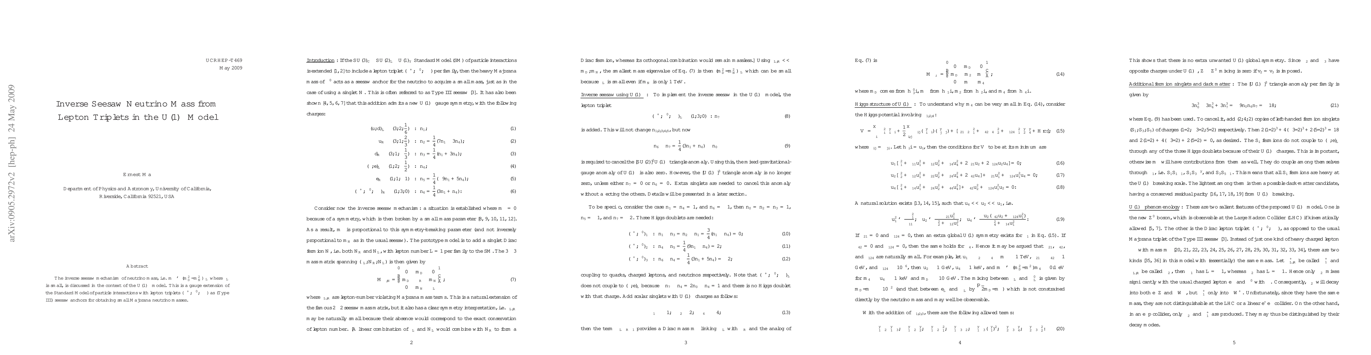 The paper explores the inverse seesaw mechanism for generating small neutrino masses within the U(1)_Sigma model, utilizing lepton triplets as Type III seesaw components. This approach provides a framework for understanding the origin of neutrino masses through the ratio of light neutrino masses to heavy right-handed neutrinos.