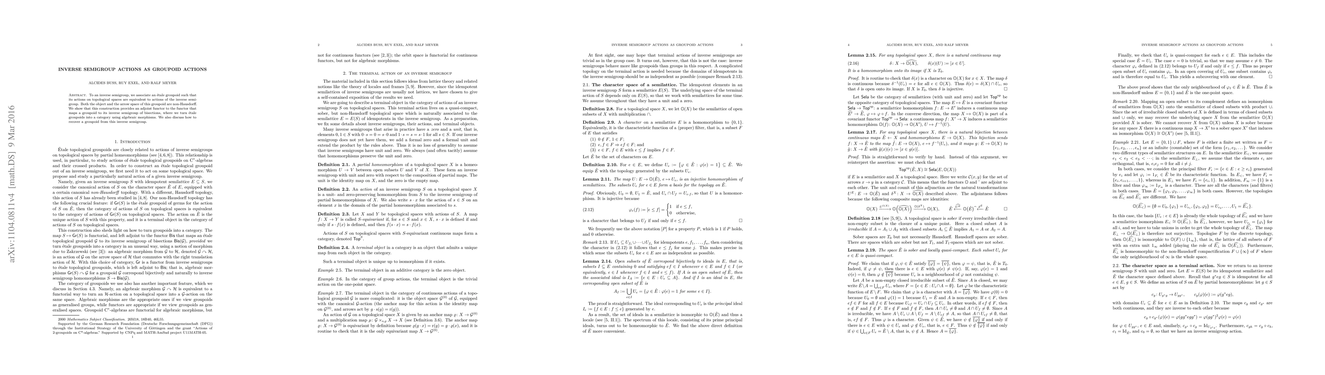 This paper constructs an \'etale groupoid from an inverse semigroup whose actions on topological spaces mirror those of the semigroup. It establishes an adjoint functor relationship between the groupoid and its inverse semigroup of bisections, and outlines methods to reconstruct the groupoid from the semigroup.