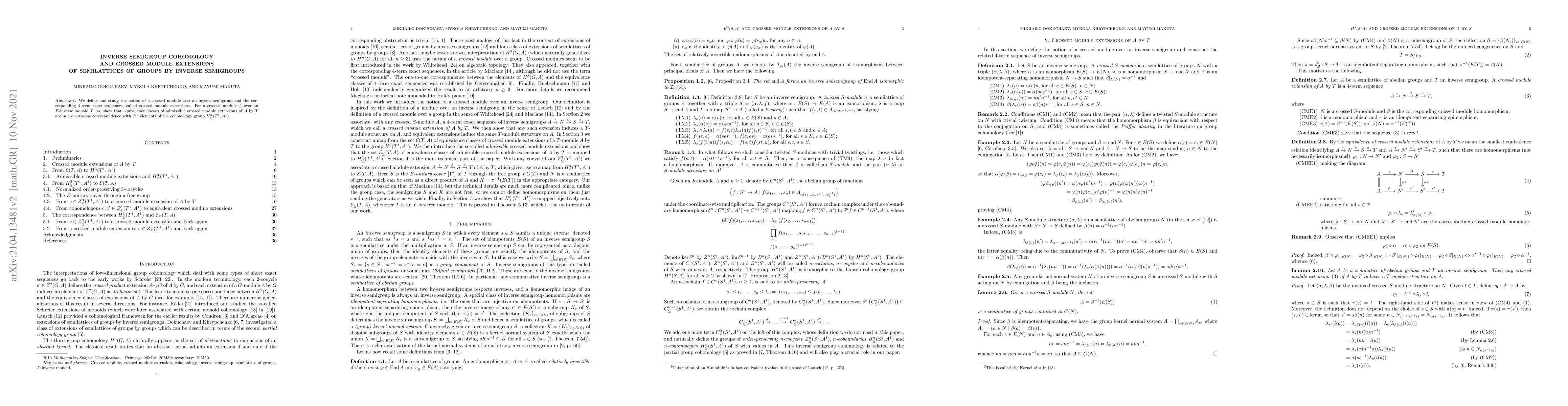 This paper introduces crossed modules over inverse semigroups and explores their extensions, establishing a connection between equivalence classes of admissible extensions and elements of the cohomology group $H^3_\le(T^1,A^1)$ for a crossed module $A$ over an $F$-inverse monoid $T$.
