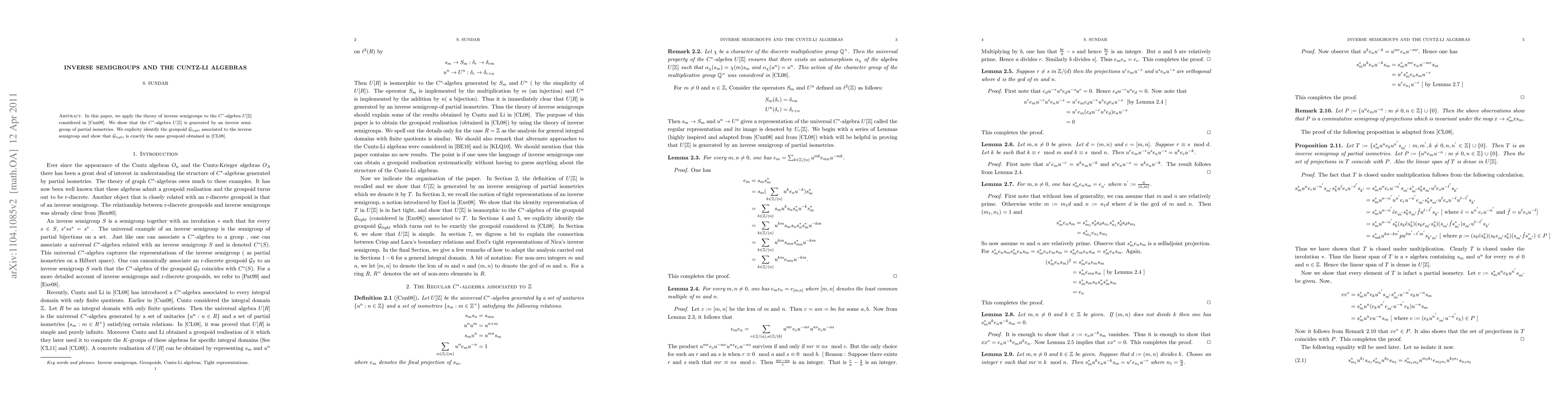 This paper applies inverse semigroup theory to the $C^{*}$-algebra $U[\mathbb{Z}]$, demonstrating its generation by an inverse semigroup of partial isometries. It identifies the associated tight groupoid $\mathcal{G}_{tight}$ and shows it matches the groupoid found in the Cuntz-Li study.