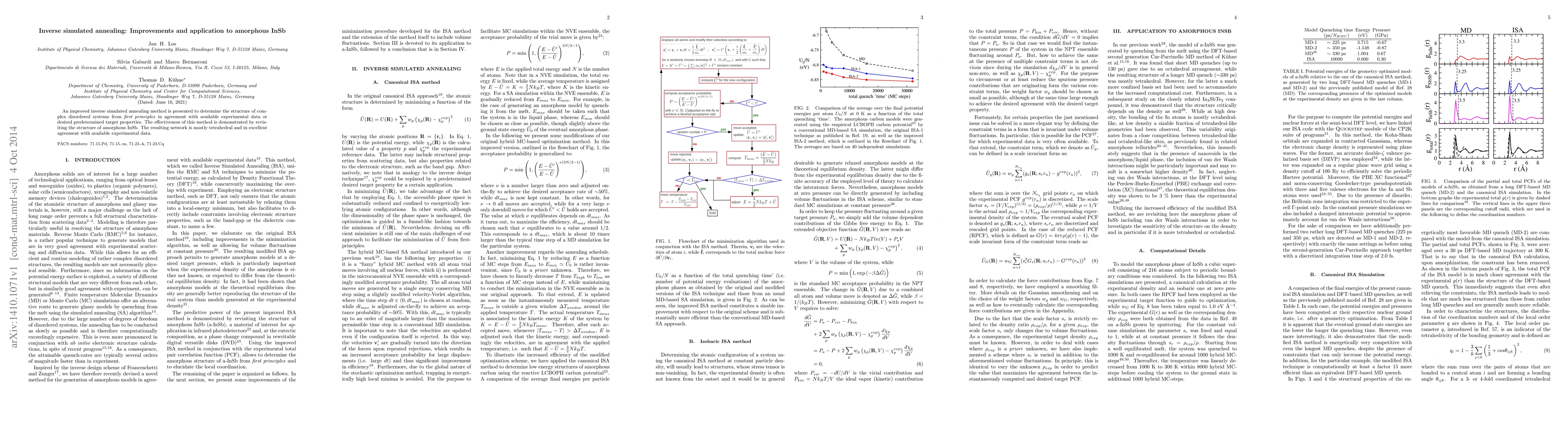 An improved inverse simulated annealing method is presented to determine the structure of complex disordered systems from first principles in agreement with available experimental data or desired predetermined target properties. The effectiveness of this method is demonstrated by revisiting the structure of amorphous InSb. The resulting network is mostly tetrahedral and in excellent agreement with available experimental data.