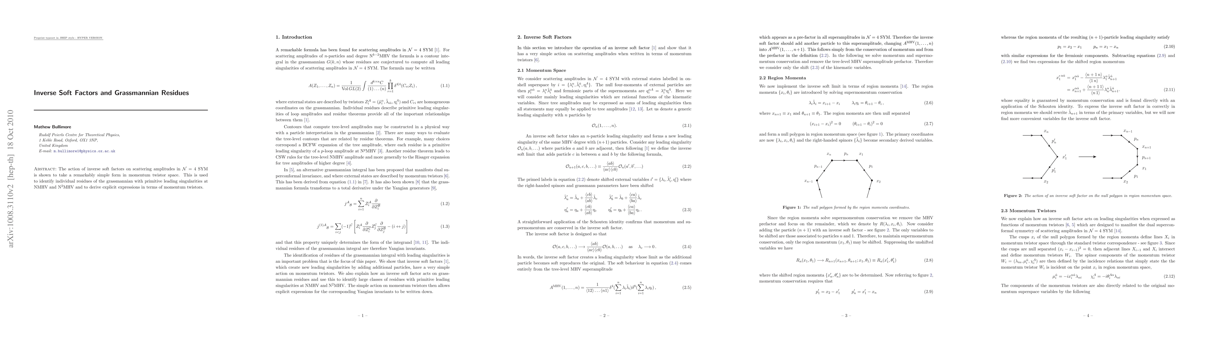 This paper demonstrates that inverse soft factors simplify scattering amplitudes in N=4 SYM when analyzed in momentum twistor space, leading to explicit expressions for residues of the Grassmannian associated with primitive leading singularities at NMHV and N^2MHV levels.