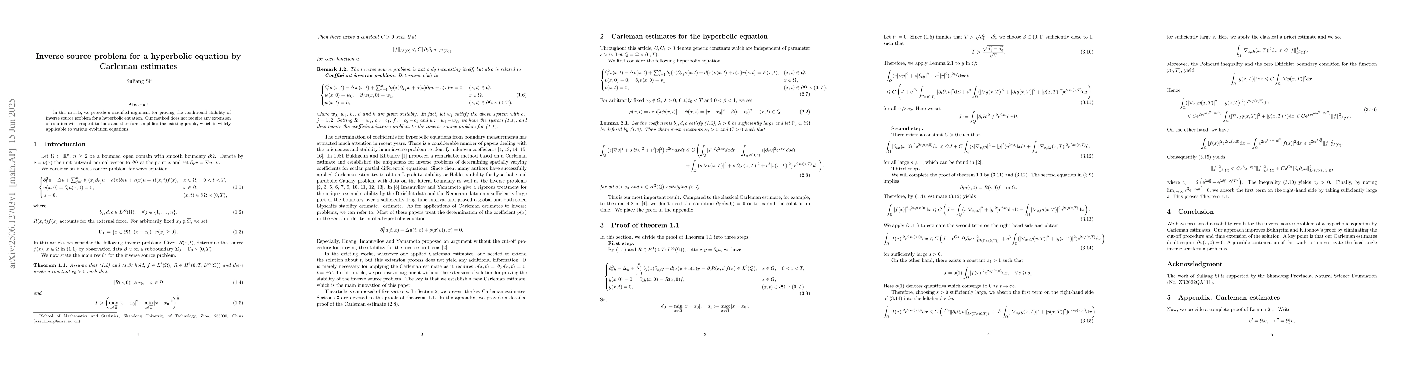 In this article, we provide a modified argument for proving the conditional stability of inverse source problem for a hyperbolic equation. Our method does not require any extension of solution with respect to time and therefore simplifies the existing proofs, which is widely applicable to various evolution equations.
