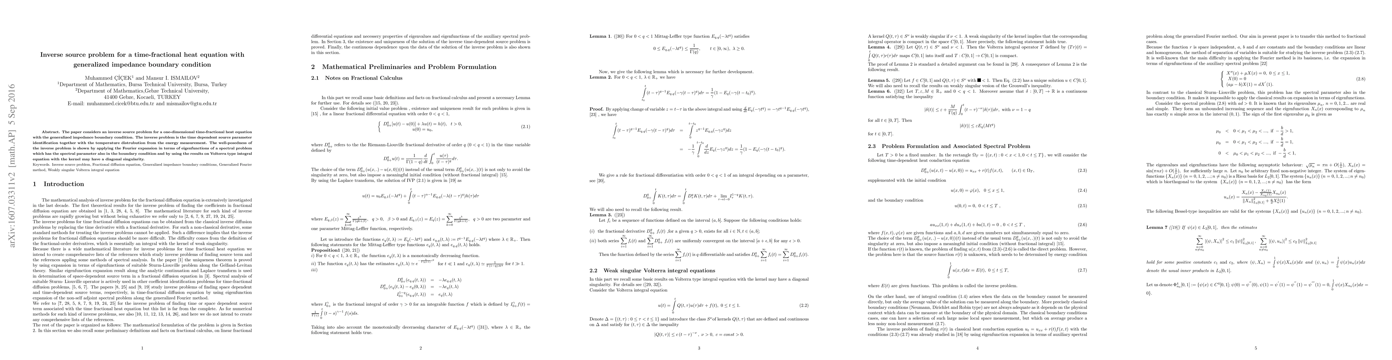 This paper addresses the inverse source problem for a one-dimensional time-fractional heat equation with a generalized impedance boundary condition, focusing on identifying the time-dependent source parameter and temperature distribution from energy measurements. The well-posedness is demonstrated using Fourier expansion and results from Volterra integral equations with potentially singular kernels.