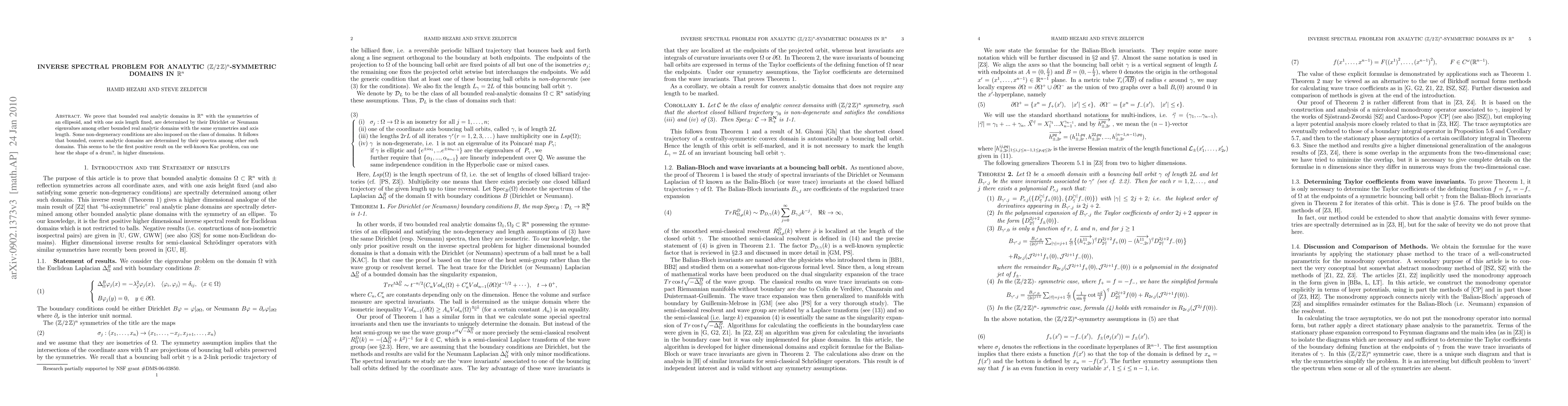 This paper shows that bounded analytic domains with mirror symmetries across all axes in R^n are spectrally determined, meaning their spectrum is uniquely defined by these symmetries.