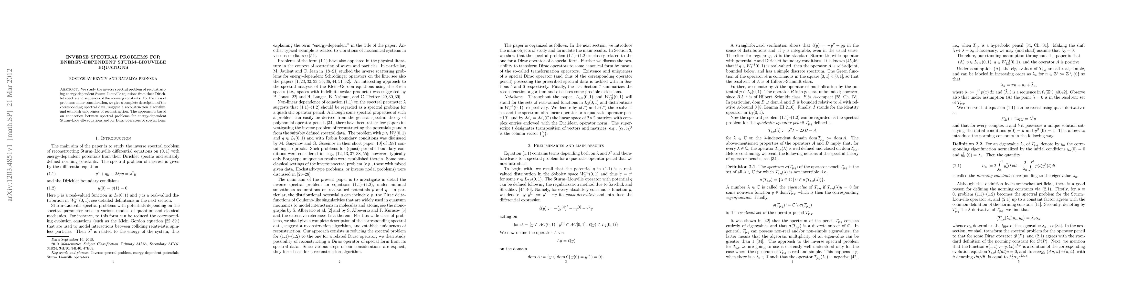 This paper reconstructs energy-dependent Sturm-Liouville equations from their Dirichlet spectra and norming constants using a reconstruction algorithm, demonstrating uniqueness via connections to special Dirac operators.