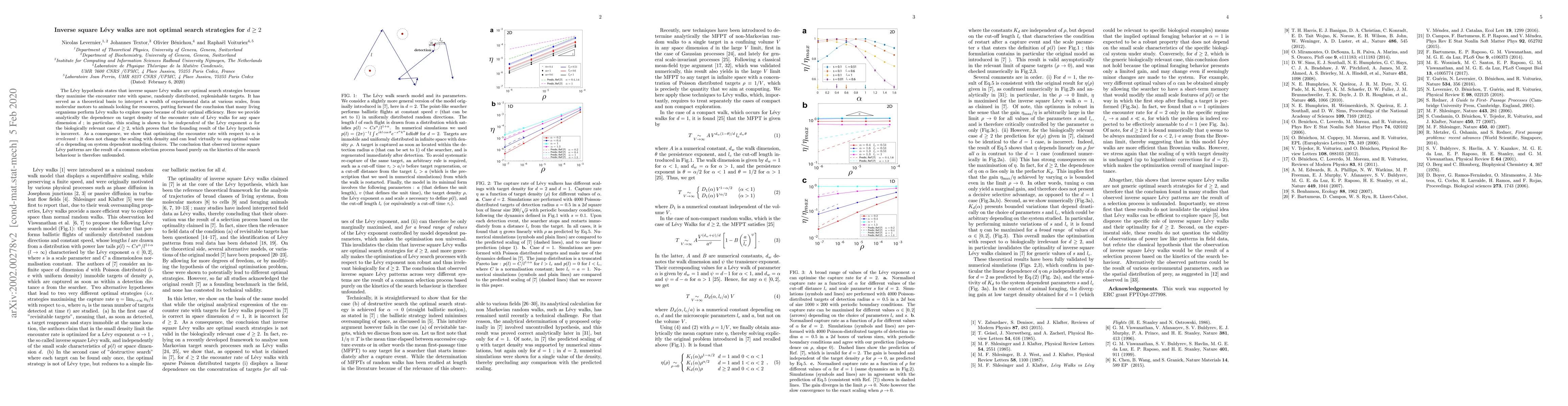 The L\'evy hypothesis states that inverse square L\'evy walks are optimal search strategies because they maximise the encounter rate with sparse, randomly distributed, replenishable targets. It has served as a theoretical basis to interpret a wealth of experimental data at various scales, from molecular motors to animals looking for resources, putting forward the conclusion that many living organisms perform L\'evy walks to explore space because of their optimal efficiency. Here we provide analytically the dependence on target density of the encounter rate of L\'evy walks for any space dimension $d$ ; in particular, this scaling is shown to be {\it independent} of the L\'evy exponent $\alpha$ for the biologically relevant case $d\ge 2$, which proves that the founding result of the L\'evy hypothesis is incorrect. As a consequence, we show that optimizing the encounter rate with respect to $\alpha$ is {\it irrelevant} : it does not change the scaling with density and can lead virtually to {\it any} optimal value of $\alpha$ depending on system dependent modeling choices. The conclusion that observed inverse square L\'evy patterns are the result of a common selection process based purely on the kinetics of the search behaviour is therefore unfounded.