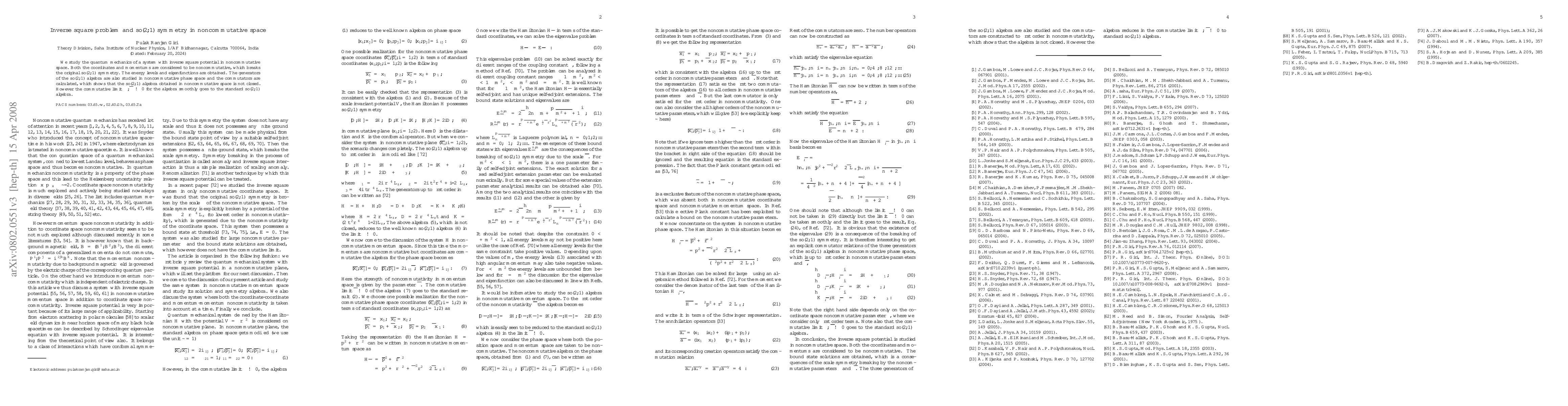 This paper investigates quantum mechanics in noncommutative space with an inverse square potential, revealing that the noncommutativity breaks the original so(2,1) symmetry. It finds that the algebra's generators in noncommutative phase space do not close, but the commutative limit restores the standard so(2,1) algebra.