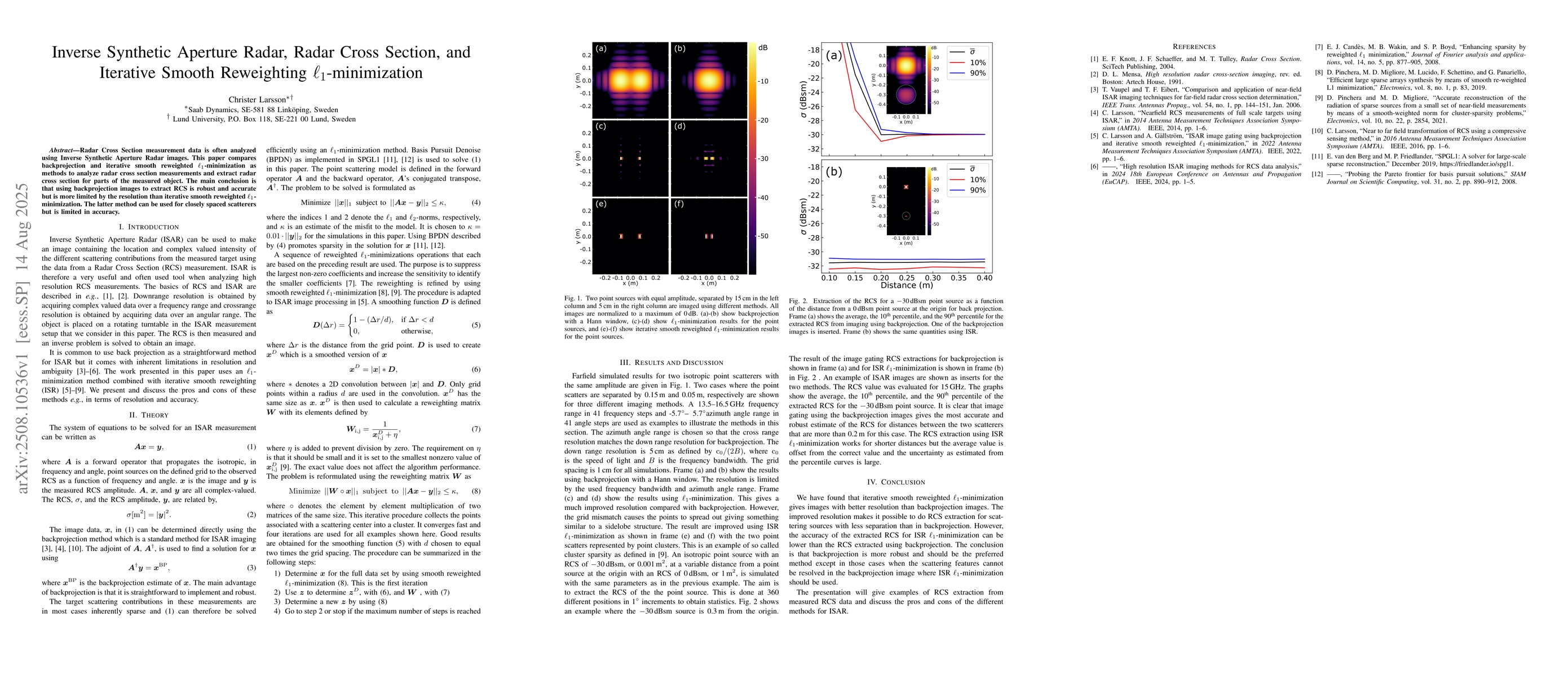 The main technical contribution of this research is the development and validation of a method for analyzing radar cross section measurements using iterative smooth reweighted ℓ1-minimization.