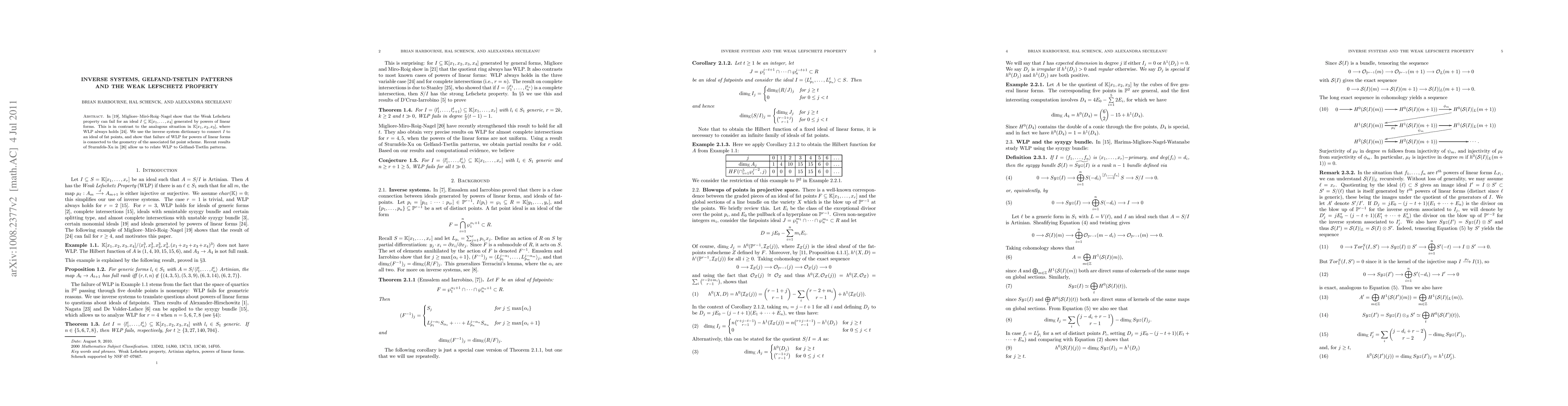 Migliore-Mir\'o-Roig-Nagel [Trans. A.M.S. 2011, arXiv: 0811.1023] show that the weak Lefschetz property (WLP) can fail for an ideal I in K[x_1,x_2,x_3,x_4] generated by powers of linear forms. This is in contrast to the analogous situation in K[x_1,x_2,x_3], where WLP always holds [H.Schenck, A.Seceleanu, Proc. A.M.S. 2010, arXiv:0911.0876]. We use the inverse system dictionary to connect I to an ideal of fat points and show that failure of WLP for powers of linear forms is connected to the geometry of the associated fat point scheme. Recent results of Sturmfels-Xu in [J. Eur. Math. Soc. 2010, arXiv:0803.0892] allow us to relate WLP to Gelfand-Tsetlin patterns. See the paper "On the weak Lefschetz property for powers of linear forms" by Migliore-Mir\'o-Roig-Nagel [arXiv:1008.2149] for related results.
