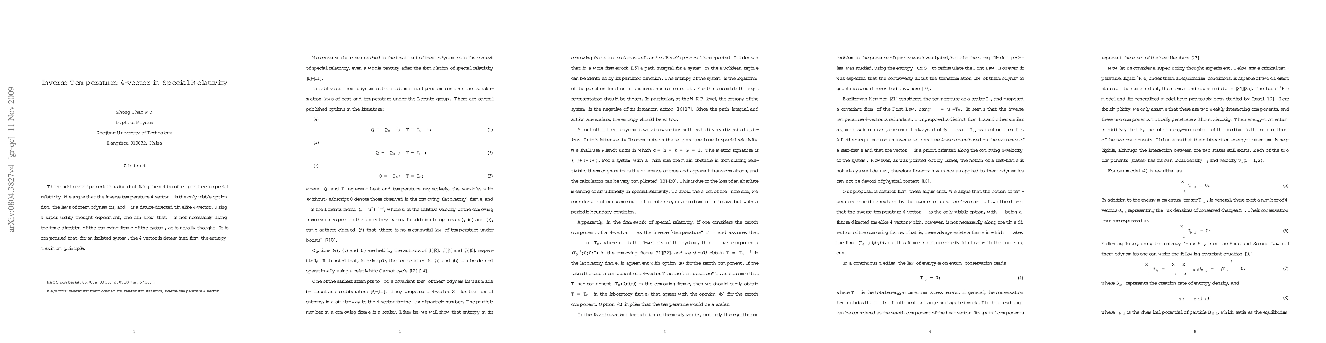 There exist several prescriptions for identifying the notion of temperature in special relativity. We argue that the inverse temperature 4-vector $\bf \beta$ is the only viable option from the laws of thermodynamics, and $\bf \beta$ is a future-directed timelike 4-vector. Using a superfluidity thought experiment, one can show that $\bf \beta$ is not necessarily along the time direction of the comoving frame of the system, as is usually thought. It is conjectured that, for an isolated system, the 4-vector is determined from the entropy-maximum principle.