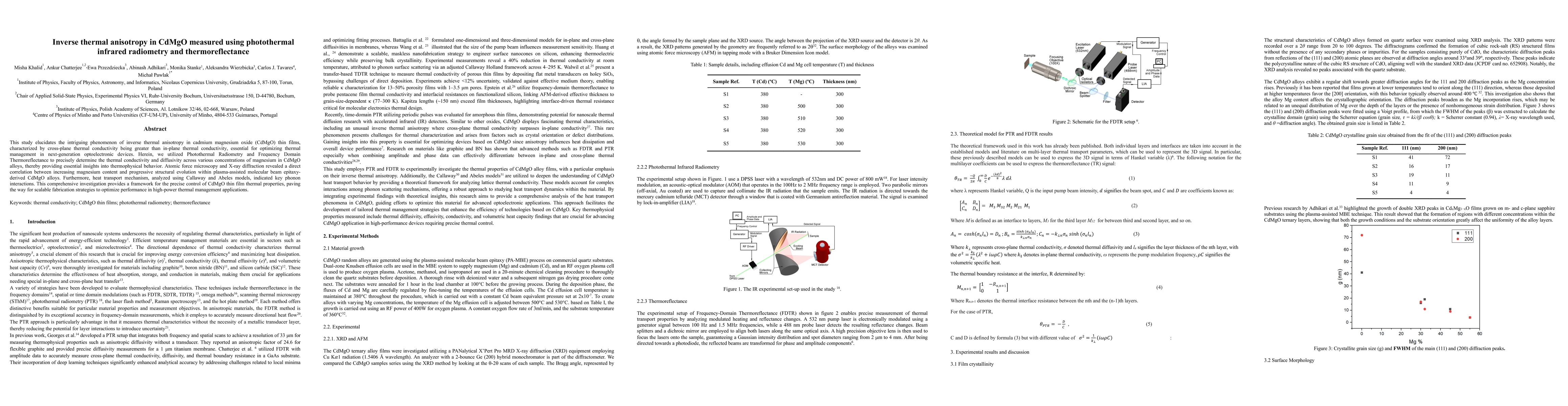 This work uniquely combines Photothermal Infrared Radiometry, Frequency Domain Thermoreflectance, and structural analysis to elucidate inverse thermal anisotropy in CdMgO, offering insights for optimizing thermal management in optoelectronic devices.