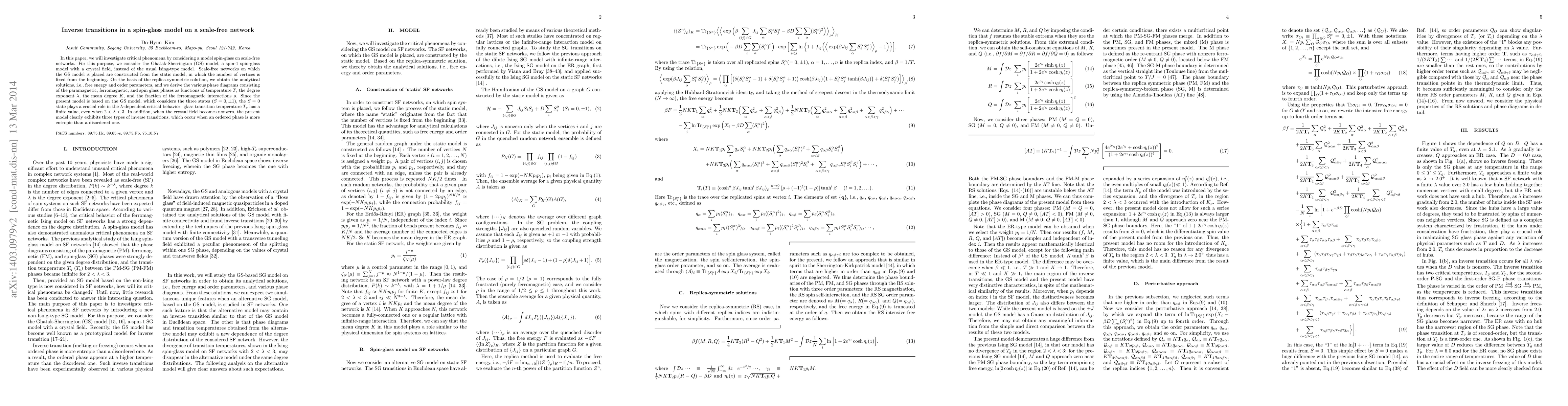 This paper investigates critical phenomena in a spin-glass model on scale-free networks using the Ghatak-Sherrington model, revealing phase diagrams and inverse transitions where an ordered phase is more entropic than a disordered one, especially when the crystal field is nonzero.