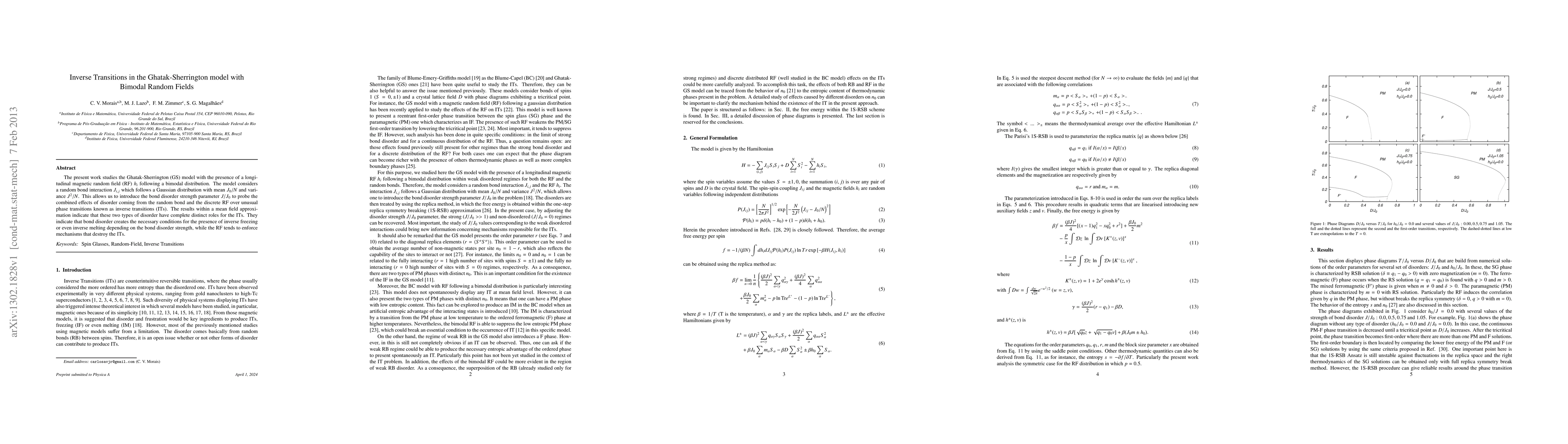 The present work studies the Ghatak-Sherrington (GS) model with the presence of a longitudinal magnetic random field (RF) $h_{i}$ following a bimodal distribution. The model considers a random bond interaction $J_{i,j}$ which follows a Gaussian distribution with mean $J_0/N$ and variance $J^2/N$. This allows us to introduce the bond disorder strength parameter $J/J_0$ to probe the combined effects of disorder coming from the random bond and the discrete RF over unusual phase transitions known as inverse transitions (ITs). The results within a mean field approximation indicate that these two types of disorder have complete distinct roles for the ITs. They indicate that bond disorder creates the necessary conditions for the presence of inverse freezing or even inverse melting depending on the bond disorder strength, while the RF tends to enforce mechanisms that destroy the ITs.