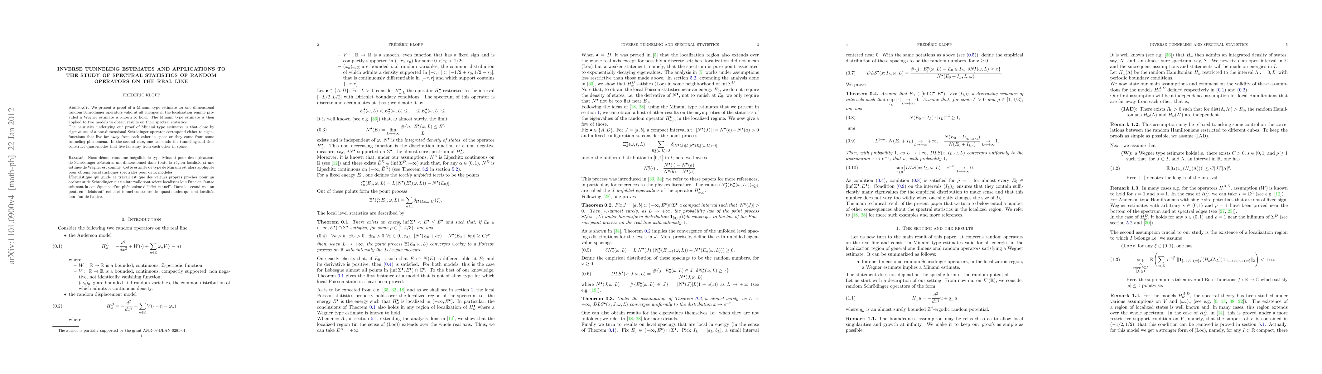 This paper proves Minami type estimates for one-dimensional random Schrödinger operators, valid at all energies under localization conditions, leveraging known Wegner estimates. These estimates are then applied to various models to derive insights into their spectral statistics, based on the heuristic that tunneling phenomena can be reversed to construct quasi-modes.