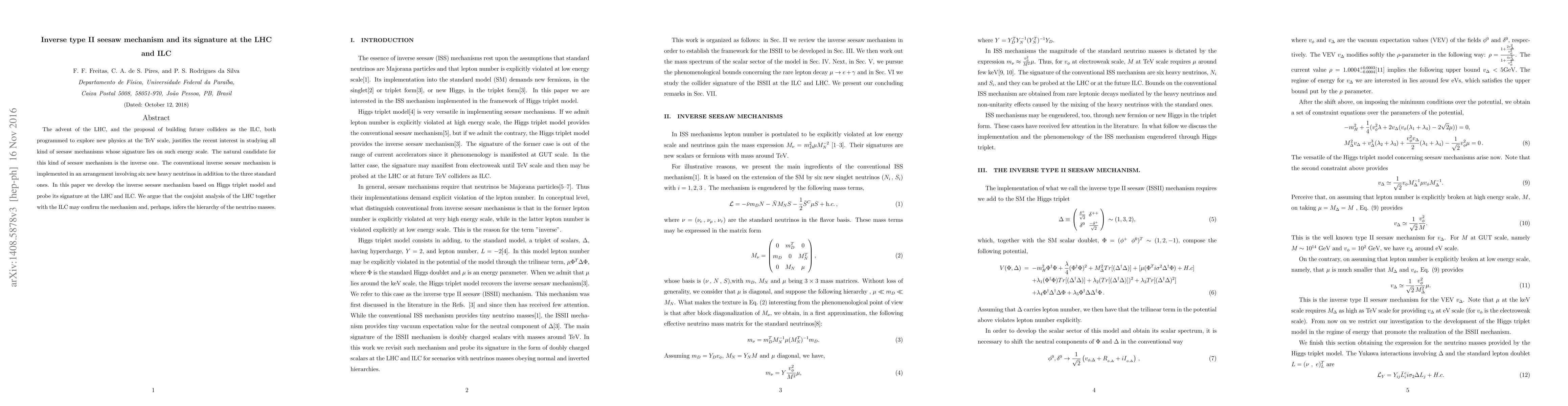 Researchers explore an inverse type II seesaw mechanism that predicts new physics at the TeV scale, proposing its detection at the LHC and ILC, which may reveal neutrino mass hierarchy.