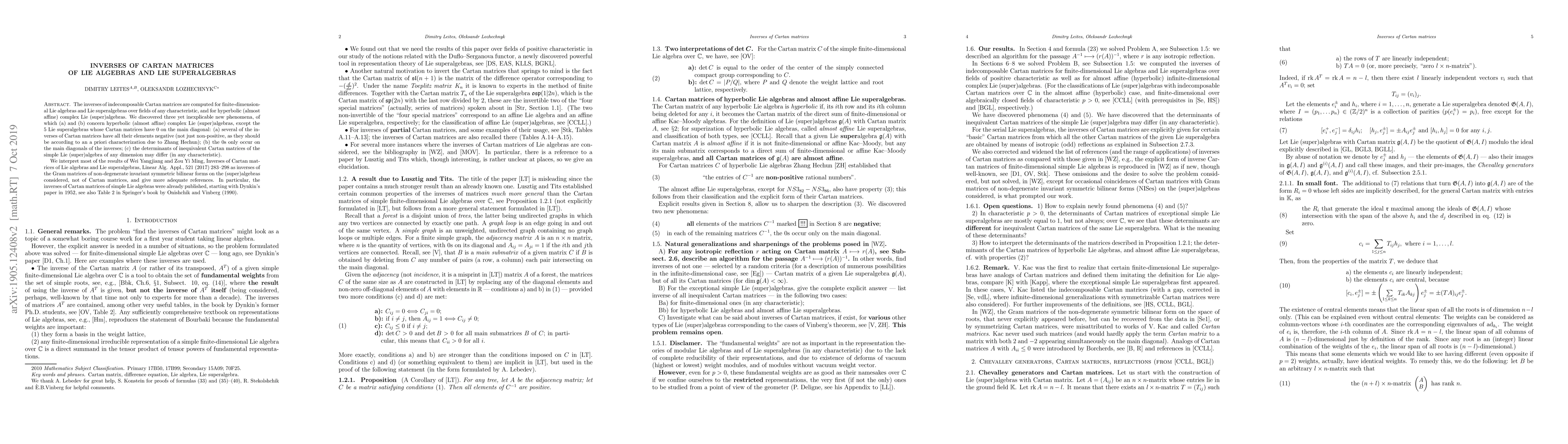 This paper computes the inverses of indecomposable Cartan matrices for finite-dimensional Lie algebras and Lie superalgebras, revealing three new phenomena: negative elements in inverses, zeros only on the main diagonals, and differing determinants for inequivalent Cartan matrices. It reinterprets previous results as inverses of Gram matrices rather than Cartan matrices.