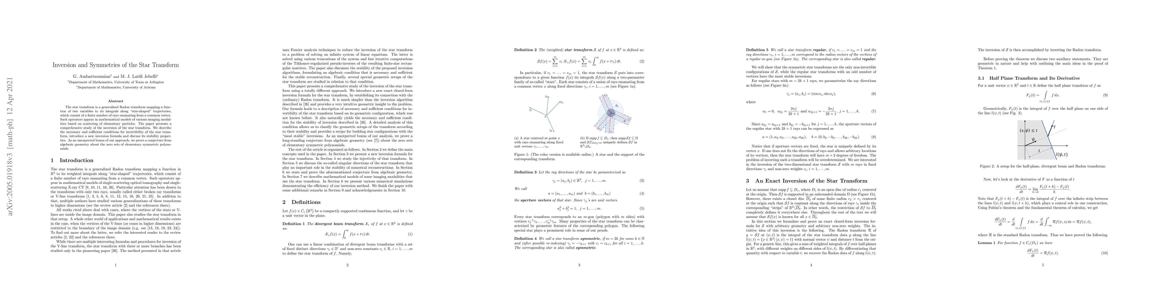 The star transform is inverted under specific conditions, with a new formula introduced that also sheds light on algebraic geometry conjectures. This breakthrough has implications for various imaging modalities using scattering of elementary particles.
