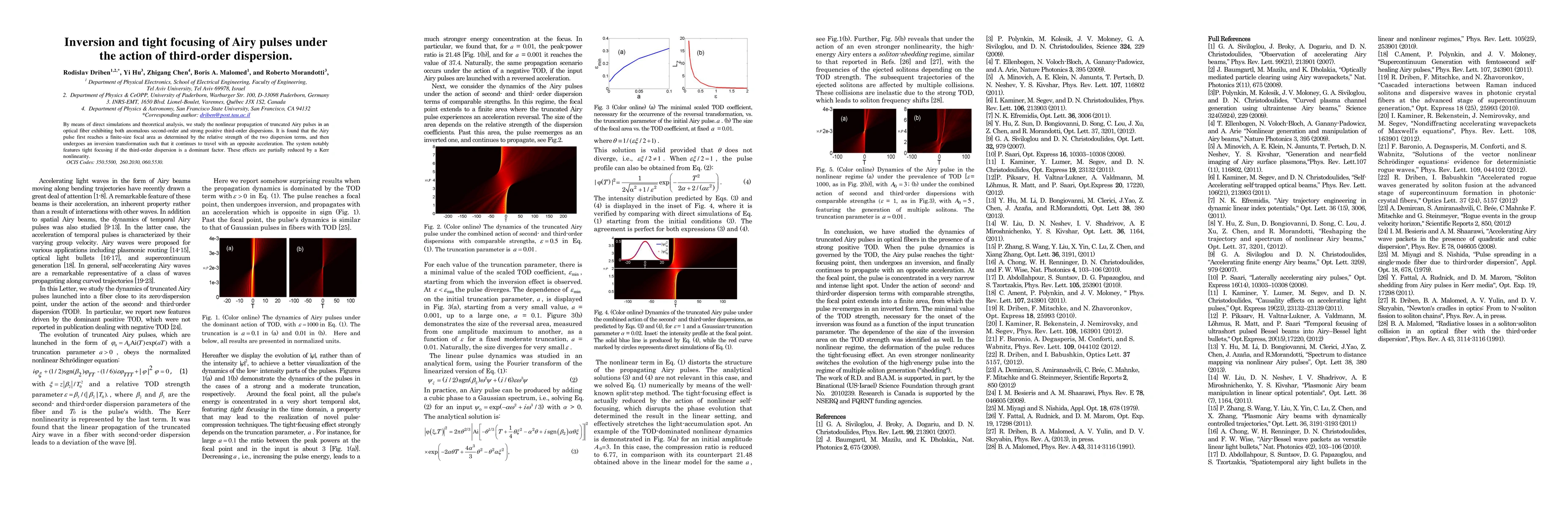 Airy pulses in optical fibers with third-order dispersion exhibit tight focusing and inversion, partially mitigated by Kerr nonlinearity.