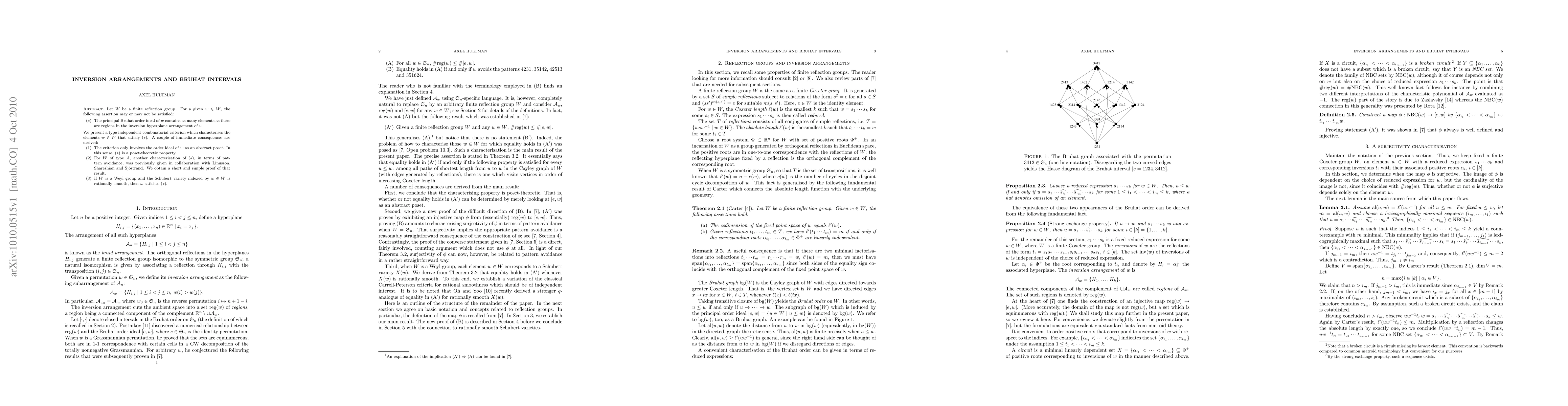 The paper introduces a novel poset-theoretic criterion for characterizing elements in Bruhat order satisfying a specific property related to inversion arrangements.