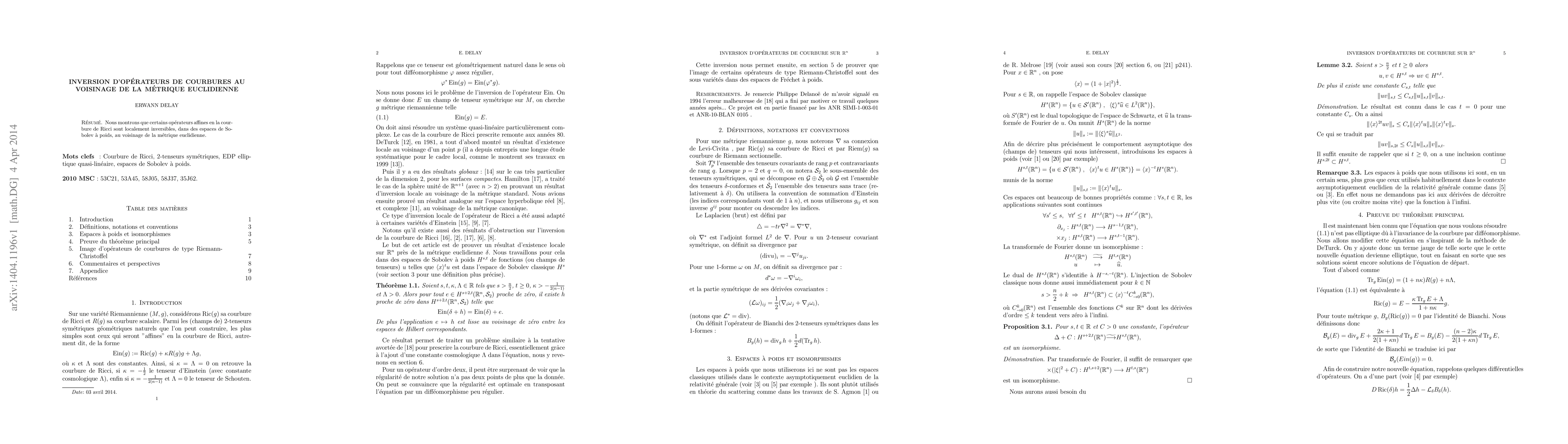 We show that some curvature operators are locally invertible, in some weithted sobolev spaces, near the euclidian metric. (Nous montrons que certains op\'erateurs affines en la courbure de Ricci sont localement inversibles, dans des espaces de Sobolev \`a poids, au voisinage de la m\'etrique euclidienne.)